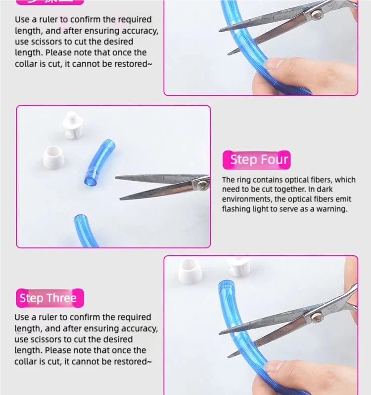 4. Universal Fit: Collar length adjusts from 13.78-27.56 inches (35-70 cm). The transparent TPU tube can be trimmed to fit your pet's neck circumference plus 2 fingers of slack, allowing for a 3cm allowance.