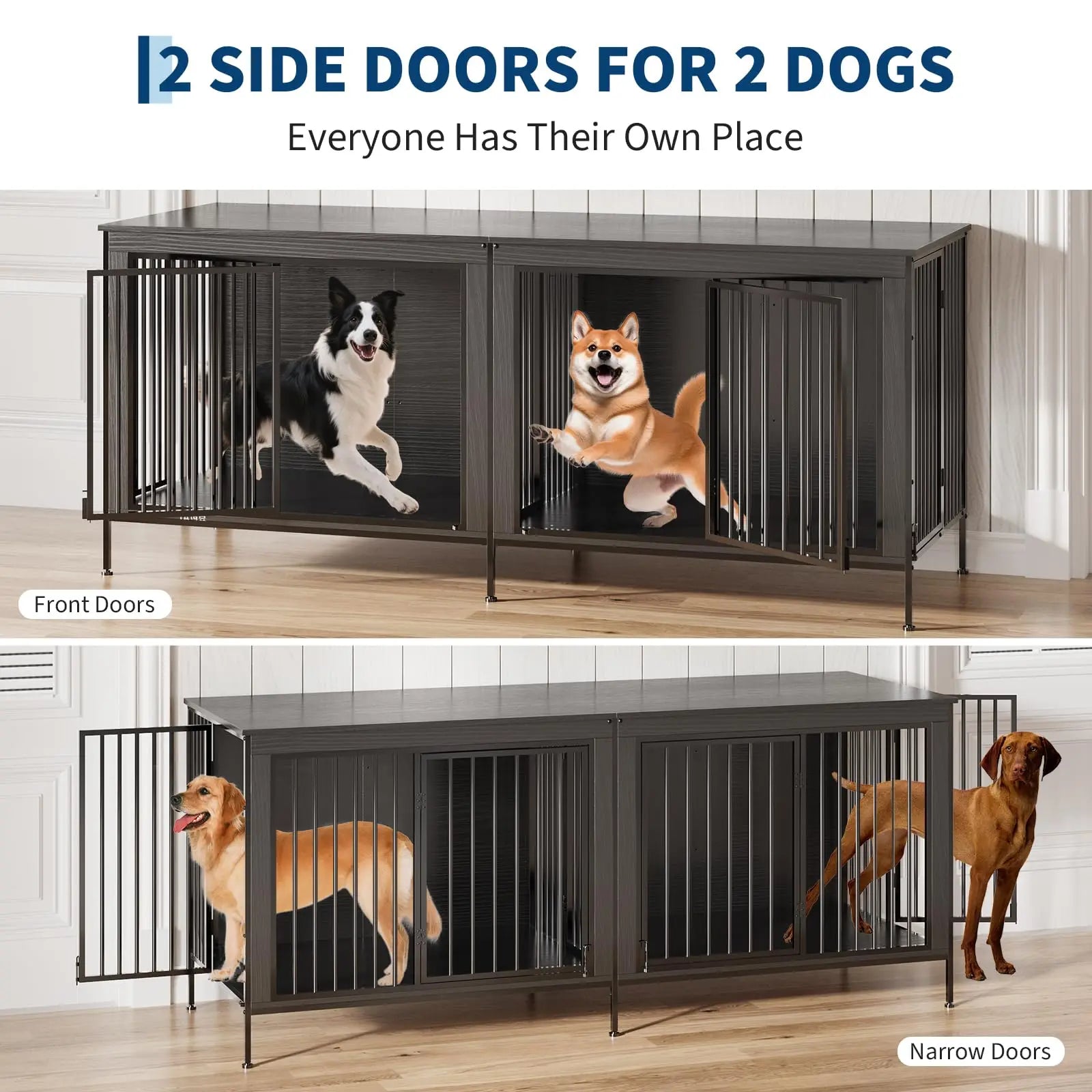 Indoor Dog Crate TV Stand: Multifunctional XL Dog Kennel with Separate Doors
